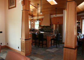 This 7,000 s.f home designed by William Kemp Architect built in 2010/ 2011has many custom features including great room custom trusses built by Hazen Construction, all douglas fir vertical grain ceilings and trim, custom wood garage door built by Hazen Construction and state of the art kitchen and baths.